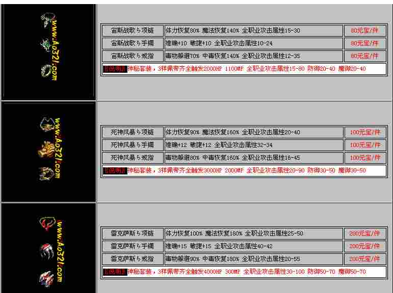 特殊戒指的升级代替了大批量的装备升级,并且都是几率合成,最终可以合成到双属性戒指,双属性戒指合成100%成功不会失败消失.