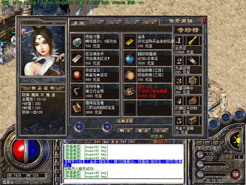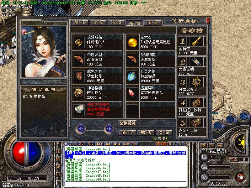 一.【特色活动】蚩尤必暴元素石.需要魔法神石提交,召唤出蚩尤同时可获得丰富的奖品.包括暗影神斩、致命2套装卷、逍遥首饰及武士神石、合成仙丹等大量奖品!