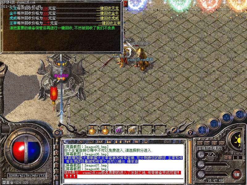 [255,249]最新增加元宝刷怪.如果您不想花时间去找怪的话.可以在土城进入元宝刷怪地图.分为单人地图和多人地图.尽情刷怪获得顶级装备