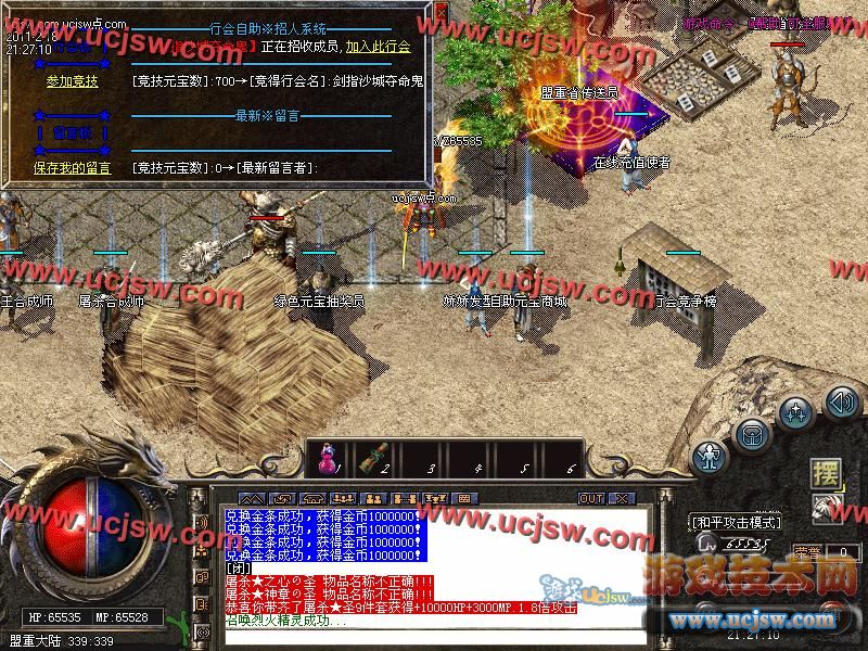 【沙城奖励】首届沙城战将于2天后晚上20点整举行,所有行会集体抢沙,无需提交祖玛头像,沙城奖励:元宝货币30万。注:(沙城奖励会系统自动增加到正城主的帐户里)