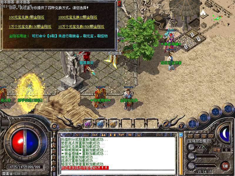 刷装备说明:刷装备、元宝、怪物都需要一定的金刚石,金刚石可以用元宝兑换。比例有一定的差异!