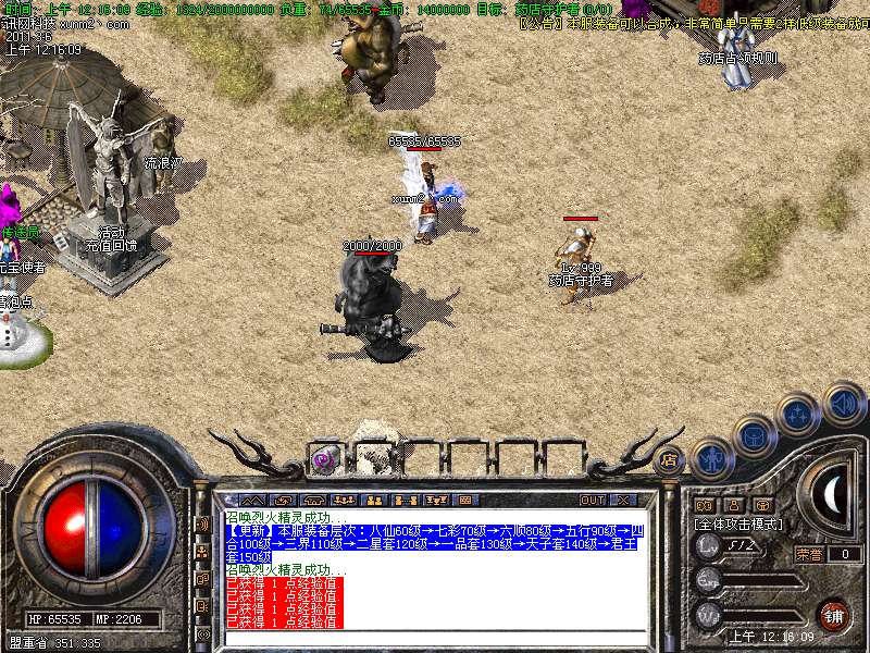 〖公告〗本服转生系统非常强大,共12转,每转一次自动获得相应属性点!转生后可以佩带转生装备!具体咨询土城转生雕像!各大地图爆出图腾(附带攻击倍数属性,而且佩带此装备可以变身怪物非常牛B),面纱(附带经验倍数属性),盾牌(附带防御属性)!