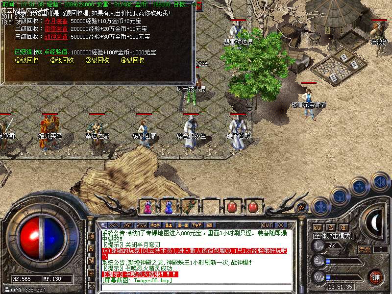 新手回土城后可以去魔龙等地图,装备可回收相对应元宝!...