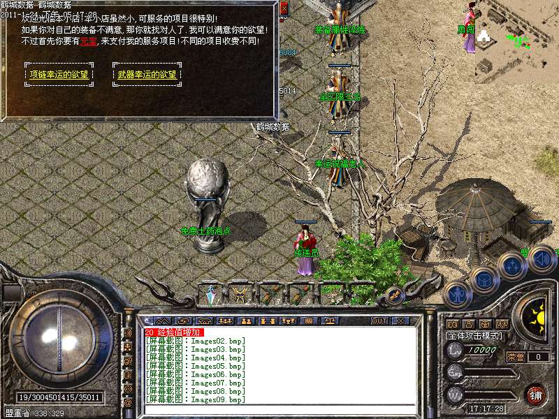 武器最高可升7点,99%成功率 武器幸运可升7点,项链可升3点. 只要你有时间,幸运10套不再是梦. 武器升级地址:土城万能NPC