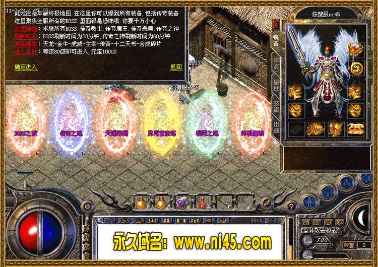 [元宝刷怪]:最新增加元宝刷怪.如果您不想花时间去找怪的话.可以在土城进入元宝刷怪地图.分为单人地图和多人地图.尽情刷怪获得顶级装备