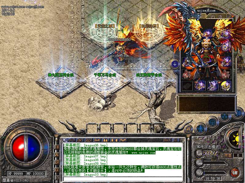 羽化就是大家常见的转生,本站一共九次转生,满转可获得6600点属性点,还有珍贵的【王朝圣水】,是PK中必须的物品!