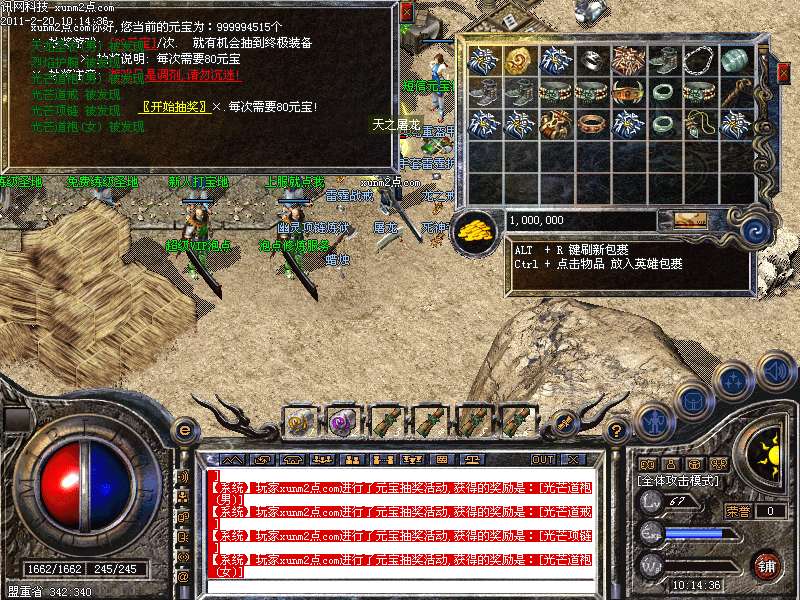 正式开放注册时请记住您注册时的姓名,生日,和密码保护,所有要找密码的玩家必须要提供以上信息才给予找回。本服务器不售任何装备,等级,属性,完全公平公正,所有装备在游戏中可以爆出。