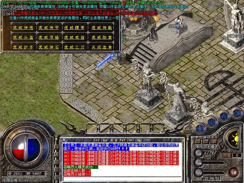立即下载GM天空完美仿盛大v1.85绿色庄园版虎威荣耀金牛圣殿装备升星五转