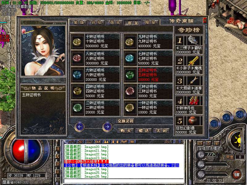 【装备回收】转生装备每个阶段的装备都能在土城NPC那里回收!换的声望-经验-元宝!所以请大家不要乱扔装备.