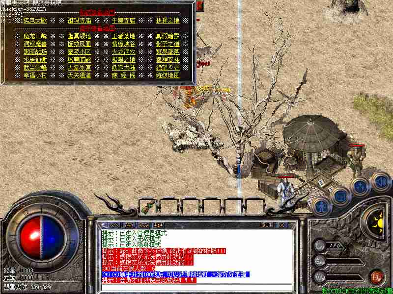 ★新地图〖太极阵〗分四层,打死每层BOSS,必爆彻地钉,BOSS刷新间隔2小时。帝王套装等你来拿!!除新怪物以外,其他所有BOSS刷新时间均为60分钟
