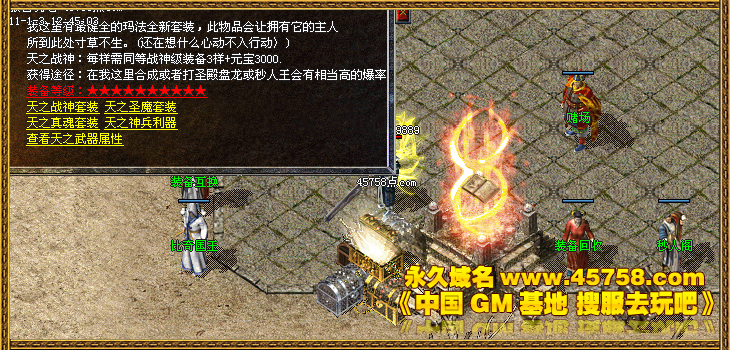 5.天关是玩家获得终极装备必去之处,去天关必须用灵符灵符可以用元宝换取,或者用在线泡点的能量换取!