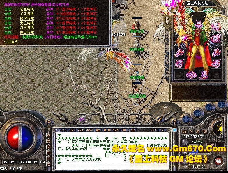 【特色功能】:每天每隔2小小时【送宝龙神】必爆主宰套!地点在土城服装店下方!