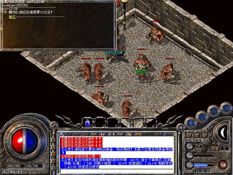 封魔殿 适合40以上玩家单独或组队练级地图 2小时 “虹魔套、祖玛套” 10000金币