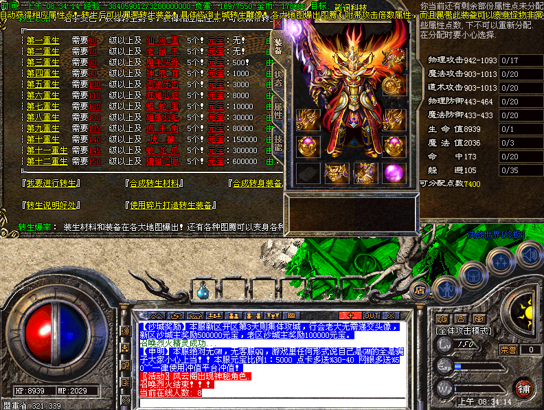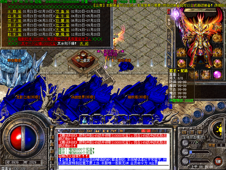 - ☉ V8引擎传奇端游【荒域专属单职业九大陆】Win一键端+配套补丁网站+架设教程