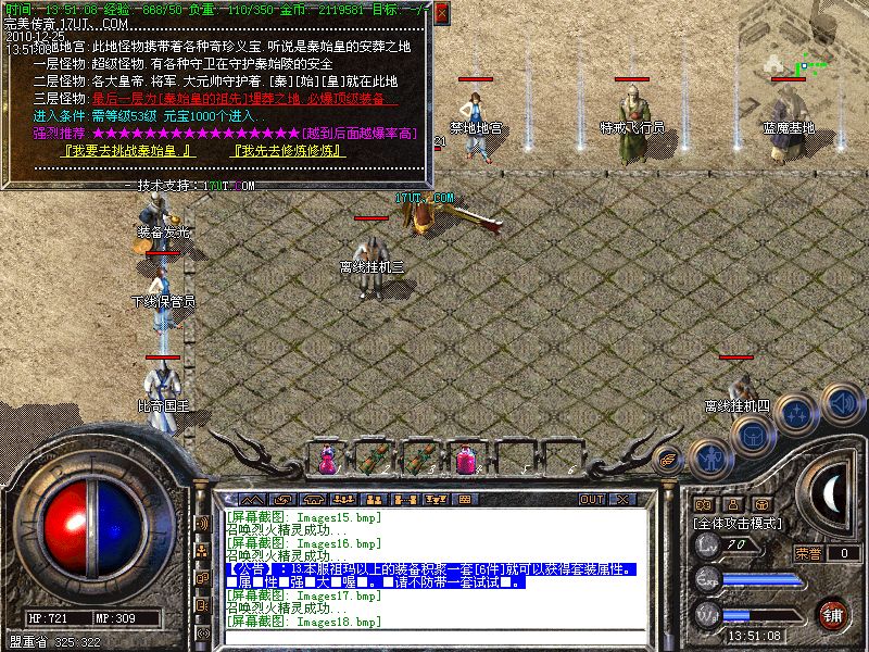 [地图亮点] 天堂门、十二生肖、狂暴泉、赤月豪门、禁地地宫、蓝魔基地、魔神绝地、龙神大殿等