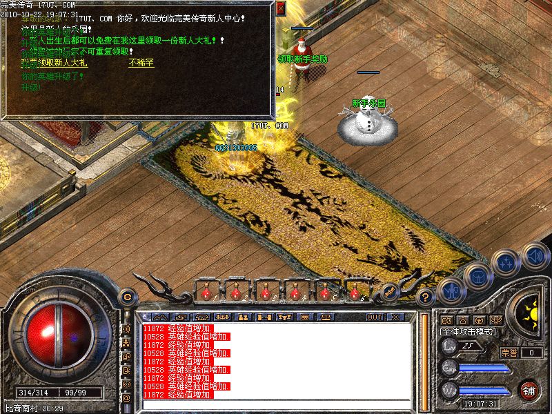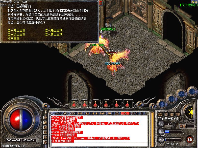 【落元宝雨】 行会PK室(提示),隔一定时间会天降大量元宝,可进入拾取。