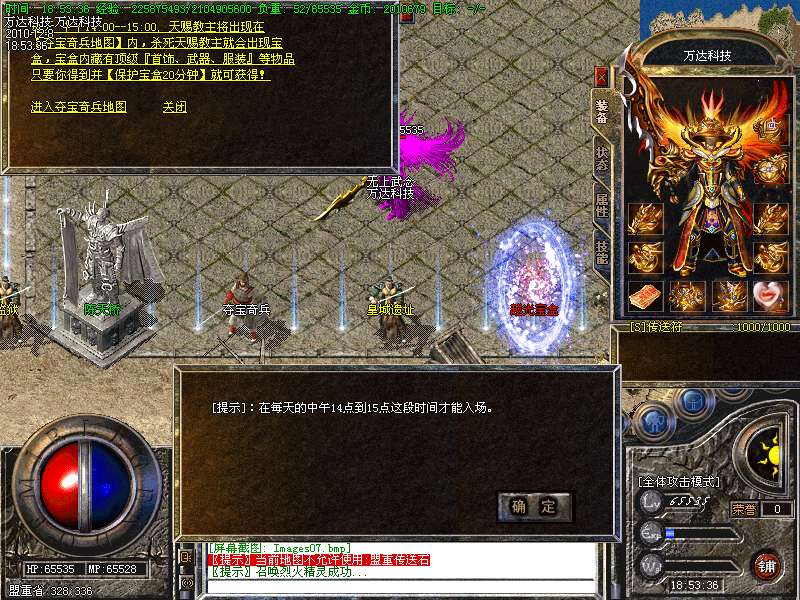 10.行会争霸地图全天开放,每日23点行会争霸活动,获胜方可得20W元宝!
