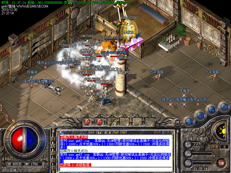 官网:www.gm67.com 客服QQ:无GM管理!游戏喊话全是骗子!元宝比例短信1:1000,点卡优惠30%,1:1300!网银优惠50%,1:1500 冲得多送得多!!
