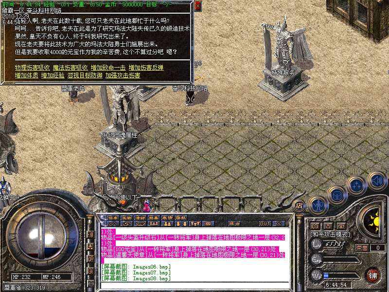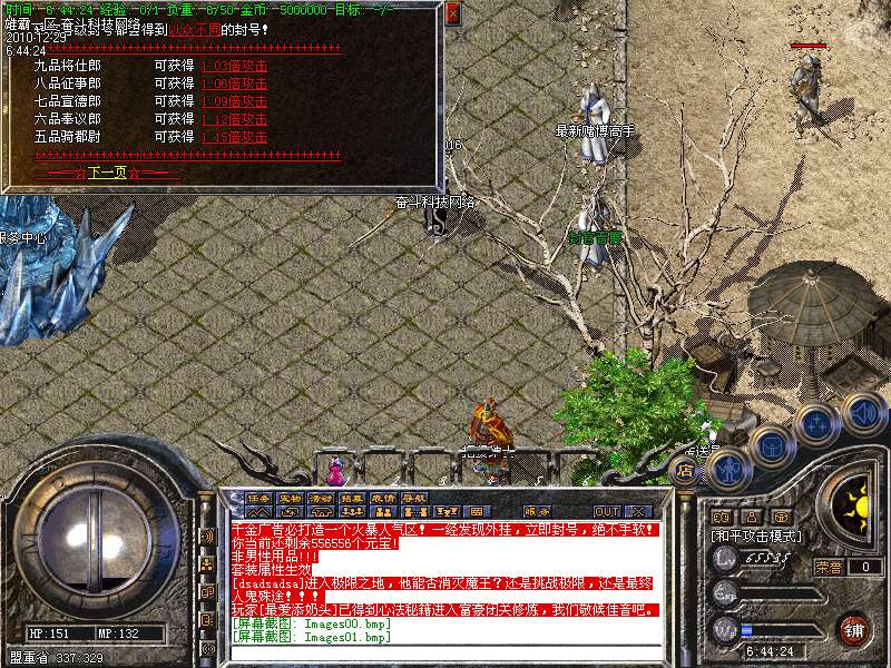 1、本F独家9转装备。。。极限7层。。装备绝对全部可以爆出。。不像有些私服打着装备全暴的名号。其实根本就暴不出来。。本F爆不出来死妈。。新手刚出来去土从右到左可以打到开荒装备。。然后够元宝的可以买两倍攻击石。然后转生。就可以去极限之地打转生装备了。。极限之地本F独家7层。1层爆1转。2层爆2转。。绝对的公平。。。3层爆3转以此类推