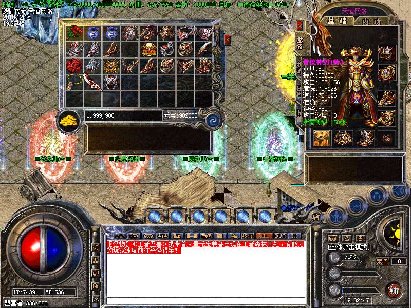- ☉ V8引擎传奇端游【荒域专属单职业九大陆】Win一键端+配套补丁网站+架设教程
