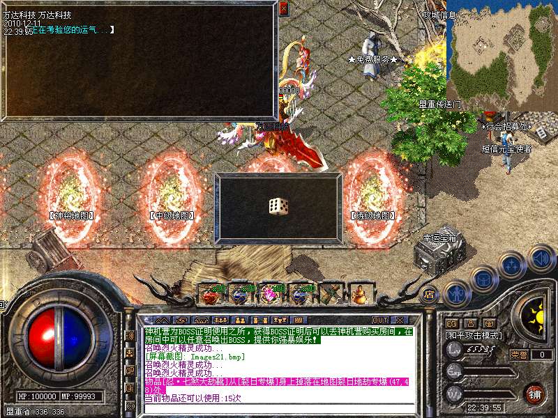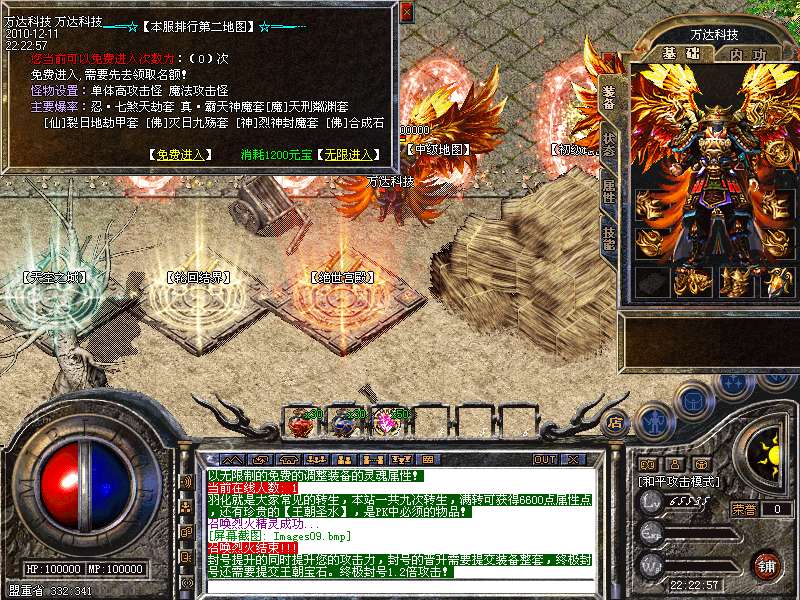 15.其他2套高级地图可以每天领取免费名额,也可以元宝进入,为本服务器高级地图,装备掉落的程度很高,是高级玩家打装备必去的地方!
