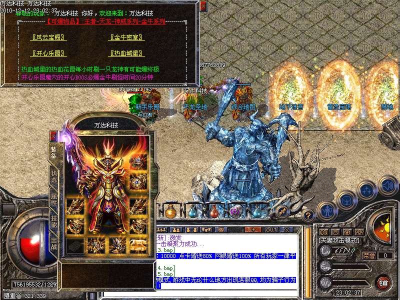 2.新增: 〖噩梦之地〗〖富贵宝塔〗〖地下迷宫〗〖狂爆广场〗