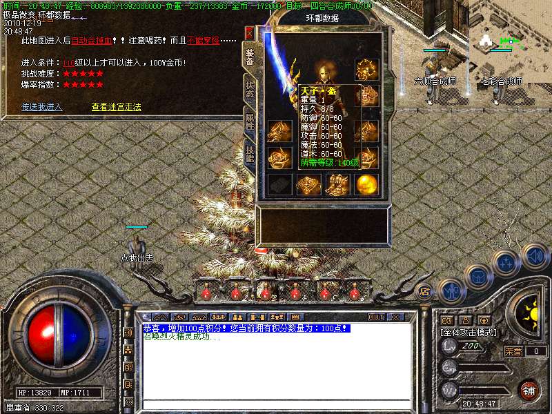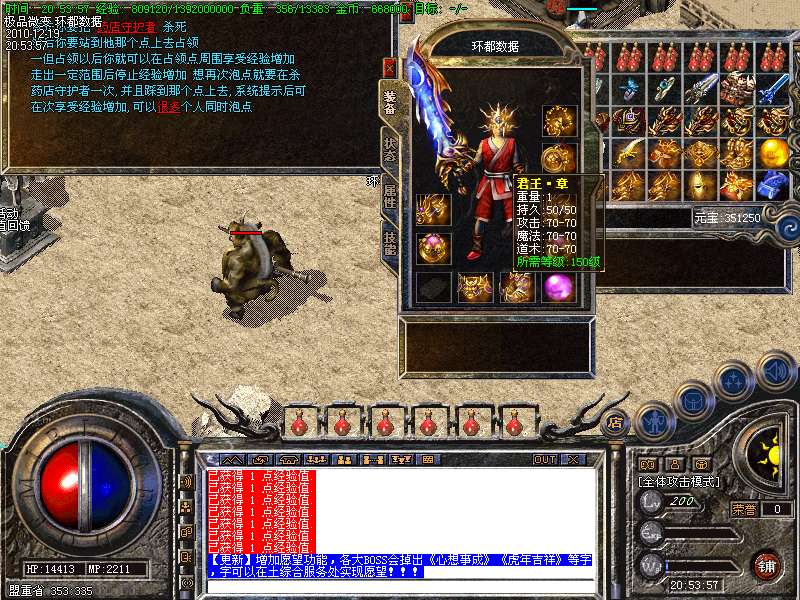 【更新】财富劫阵,BOSS爆出财富神石可以启动财富阵,启动的同时可以随机获得元宝!!满188层土药将会出现大量的元宝!!具体请查看土城财富劫阵NPC!!