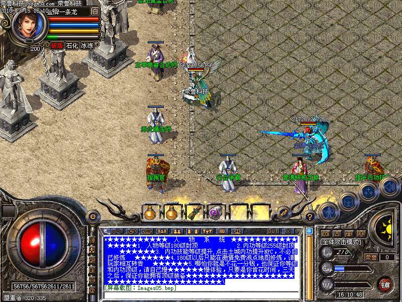 [特色]:人物上线连击技能全满.血脉全部打通. 爽爽
