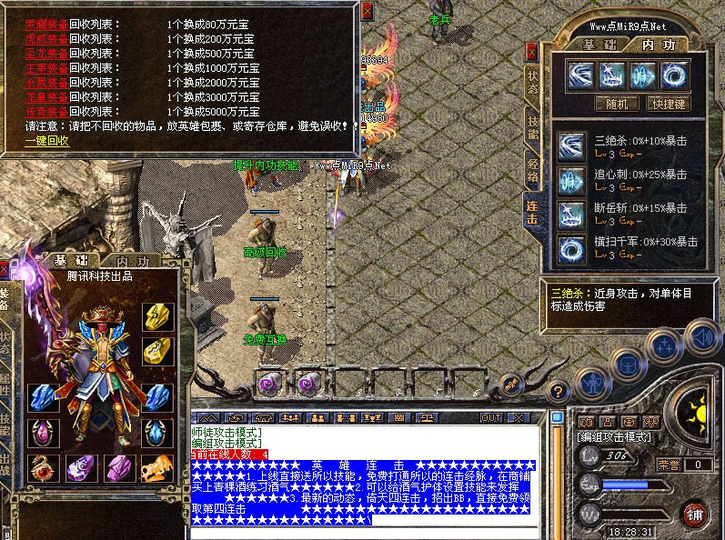 *★★★★★★★★★★ 英 雄 连 击 ★★★★★★★★★★★★★★★★1.上线直接送所以技能,免费打通所以的连击经脉,在商铺买上青稞酒练习酒气★★★★★★2.可以给酒气护体设置技能来发挥 ★★★★★★3.最新的动态,倚天四连击,招出BB,直接免费领取第四连击 ★★★★★★★★★★★★★★★★★★★★★★★★★★★★★★★★★★★★★