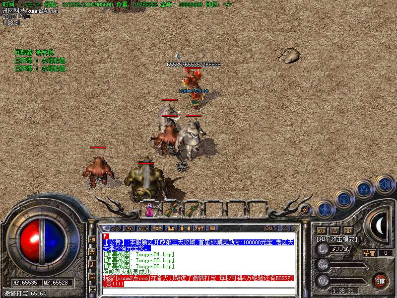 【公告】:新手打宝建议直接去万人激情打宝,一秒4万经验,边打宝,边泡点。70级后可去四个终极地图,能爆出必杀,倚天装备以及各种物品。