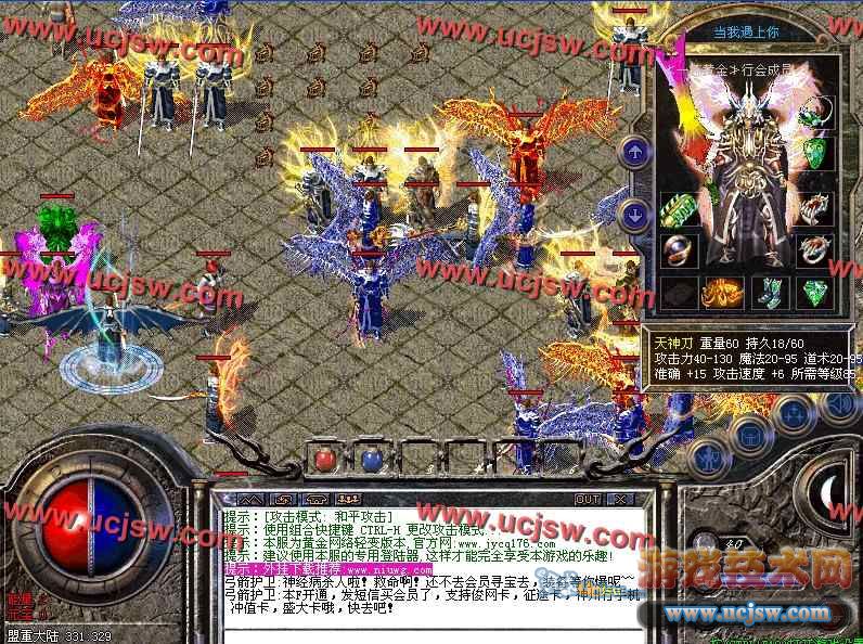 游戏版本是目前最红火的盛大版改装而来,由我们技术人员精心设计调整,完美的七彩转生轻变1.90版,实现新技能、新地图、新怪物、新装备,给你全新的感觉。所有装备游戏中都可爆出包括帝王套装 天神套装 无情套装 天地套装