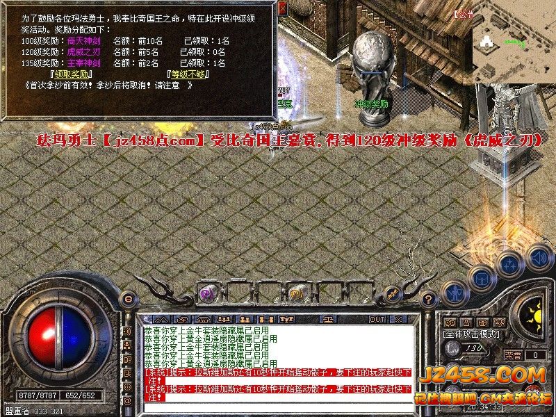 本服务器新区首次拿沙奖励城主1000000元宝!沙奖励在22点5分至22点15分领取!