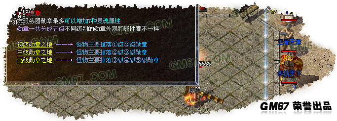 杀怪可以获得荣誉值,另外开宝箱和参加送宝活动都可以获得荣誉值,进入勋章之地都需要荣誉值,高级勋章之地暴率超高,但是需要额外收取100元宝的费用.