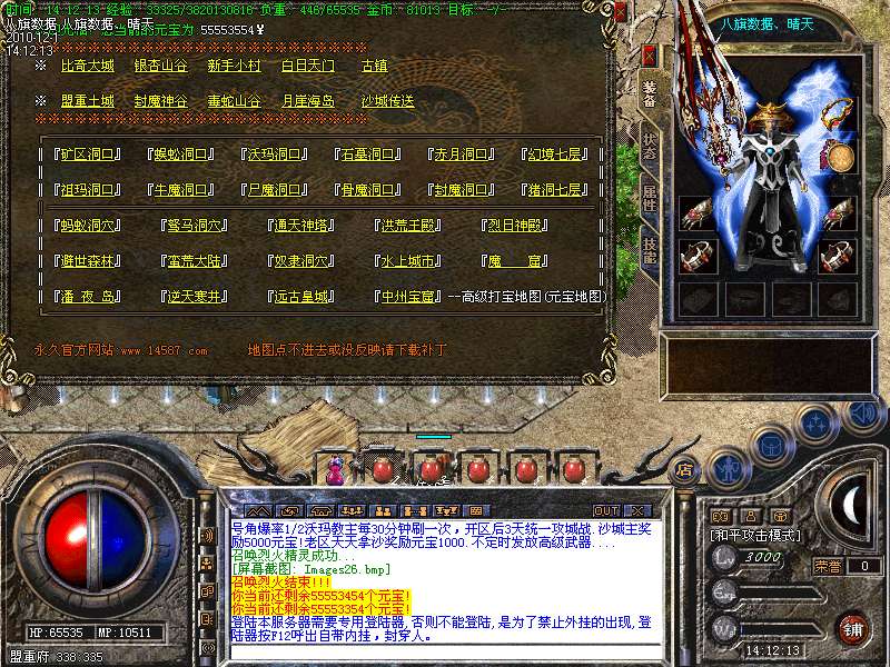 本服解除所有地图需要元宝限制。让大家玩绿色传奇。也就是说不花一个元宝去所有地图。