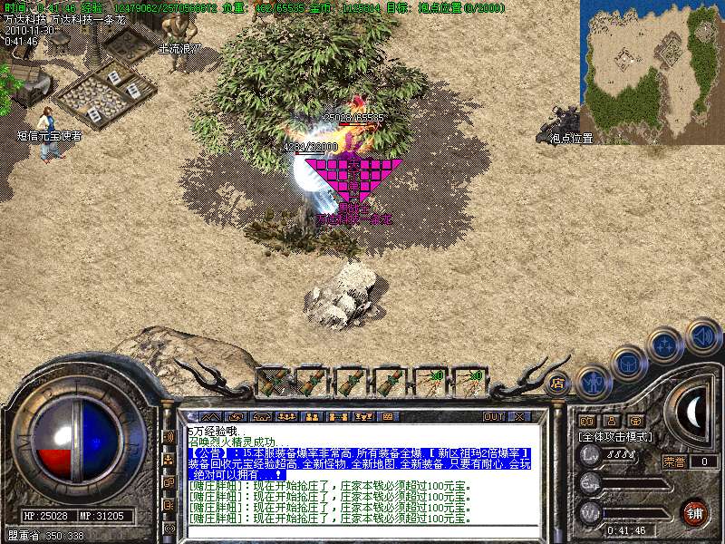 5.土药店每20分钟刷新一只[免费充值元宝]树妖.每次爆出大量元宝.至少500元宝.还有七星珠爆出