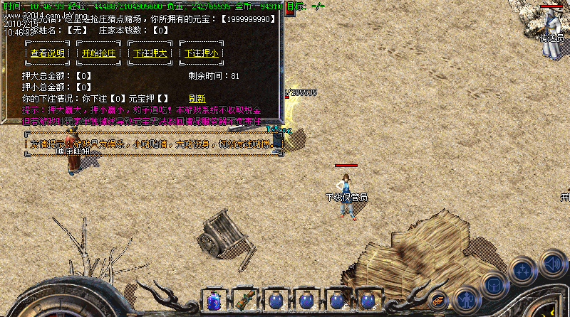 ⑼.快速升级:新手可到土药杀死经验牛.打死牛后.站上他的坐标.就可获得大量经验