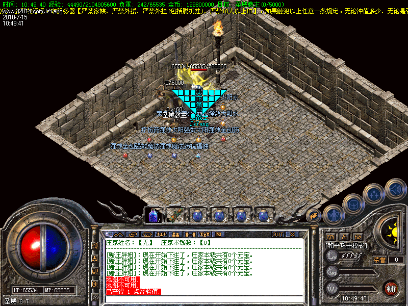⑶.挖宝活动:每一小时开放挖宝活动.全服提示.所有玩家都能进入.活动持续10分钟.活动地图中能挖出本服所有装备【包括终极】