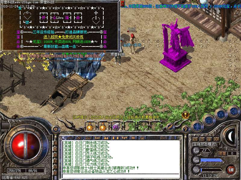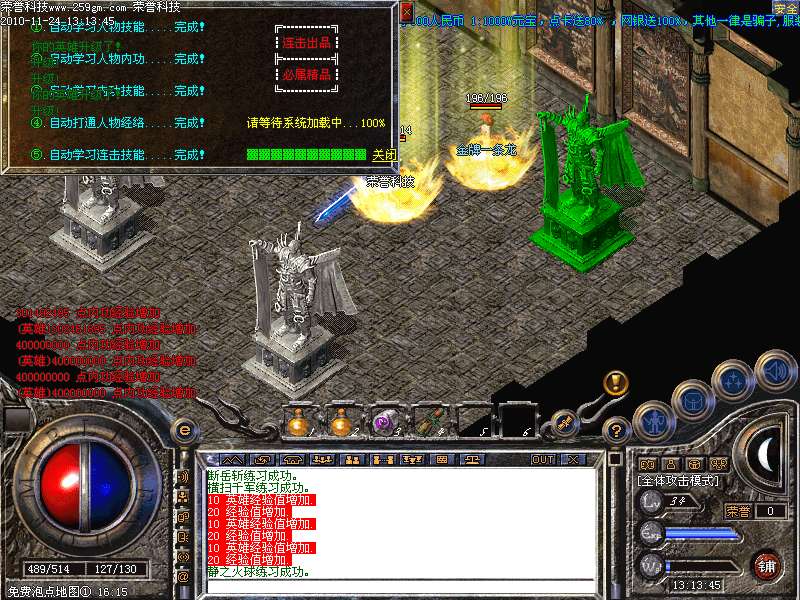 瞬间满级:新手能马上上手玩游戏( 目的进服就能打装备和打元宝(一小时可以打1 亿元宝,新手泡满级后去地狱混到玫瑰套后,进雷炎洞一层那里暴绝世,万佛,霸道,打出来的材料可以回收或者合更高级装备