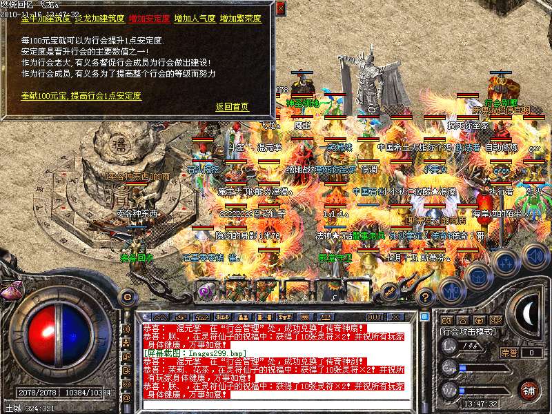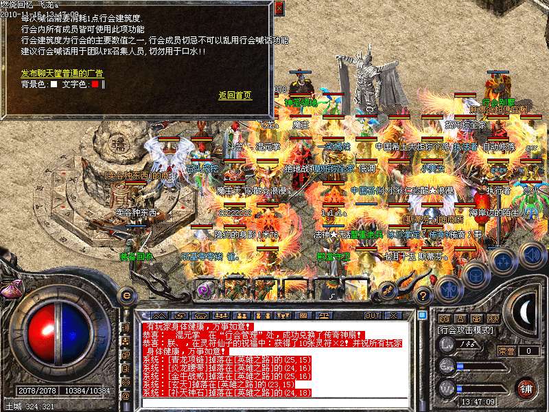 3加入行会管理功能,行会功能非常强大。凝聚行会成员之间的团结。特别是行会对攻战争地图。是行会与行会之间PK的高级战场。