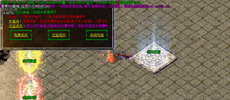 1:在土城闭关打宝处免费泡点,免元宝闭关。