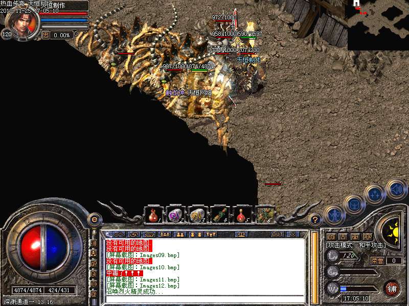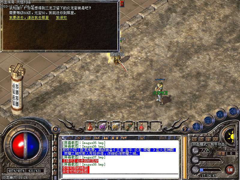 火龙邪窟,火龙洞,雷炎洞都是打元宝的好去处,对装备和等级有一定的要求!