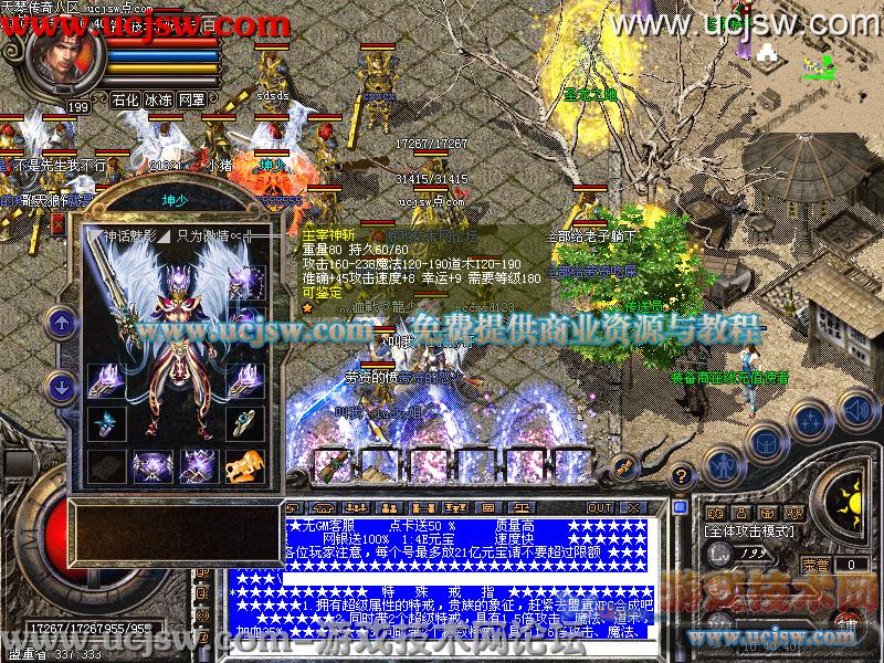 - ☉ V8引擎传奇端游【荒域专属单职业九大陆】Win一键端+配套补丁网站+架设教程