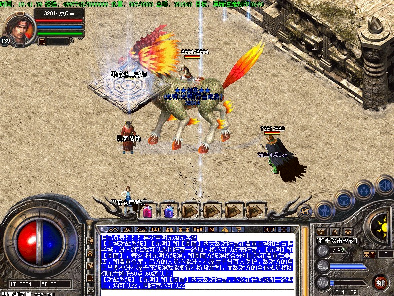 召唤魔王: 可以召唤魔王,不同的道术召唤不同攻击力的魔王(冰咆哮)