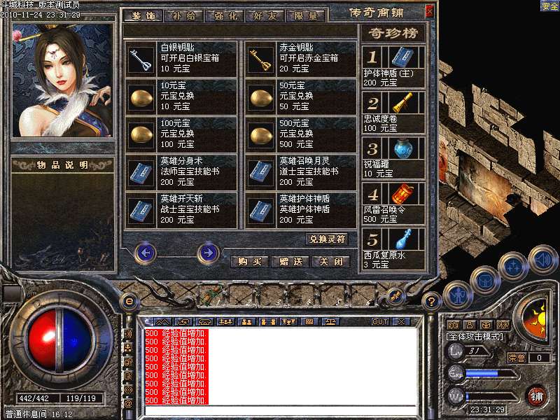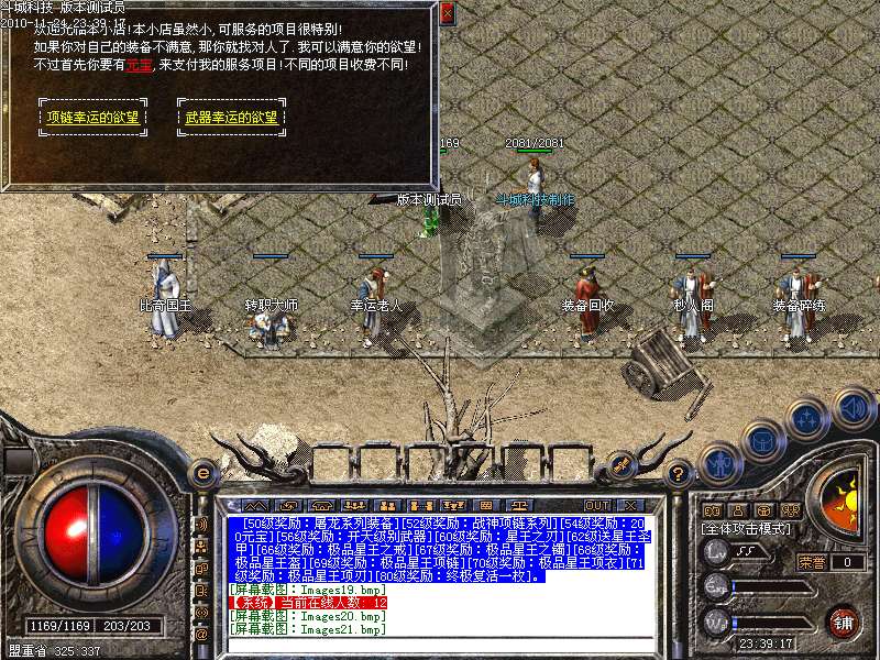 【冲级奖励】(系统自动送出,注意包裹空位)[48级奖励:20元宝] [50级奖励:屠龙系列装备][52级奖励:战神项链系列][54级奖励:200元宝][56级奖励:开天级别武器][60级奖励:星王之刃][62级送星王圣甲][66级奖励:极品星王之戒][67级奖励:极品星王之镯][68级奖励:极品星王盔][69级奖励:极品星王项链][70级奖励:极品星王项衣][71级奖励:极品星王项刃][80级奖励:终极复活一枚]。