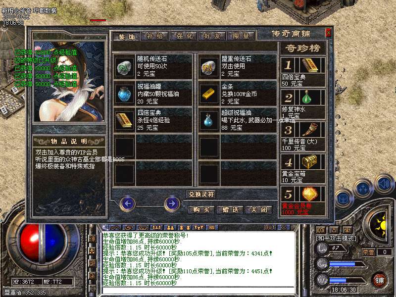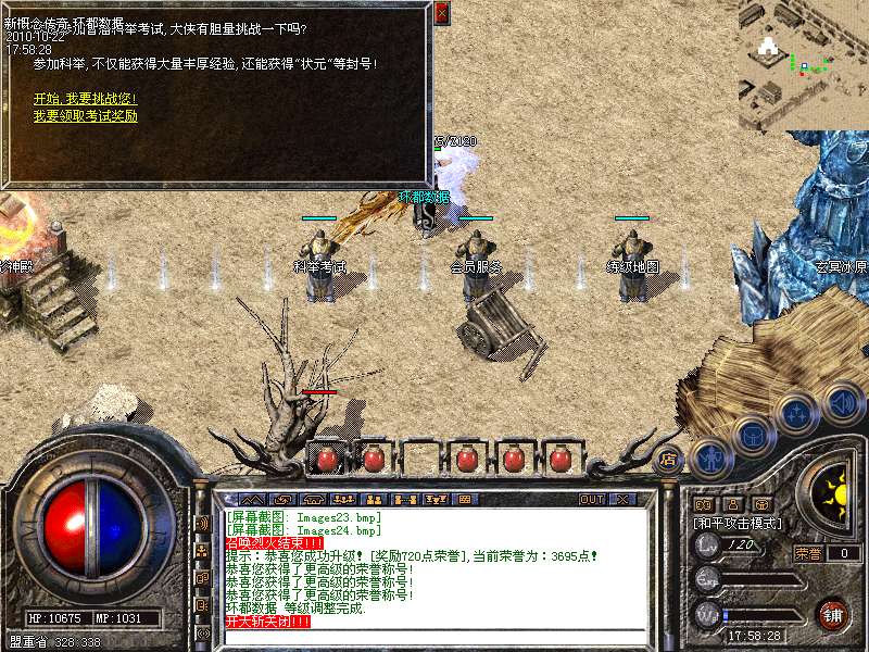 【攻城奖励】新区第一任沙城主获得10000元宝!!攻下城堡之后在皇宫找攻沙奖励NPC领取。第一届沙老大在攻城结束后可以到皇宫里自己领取奖励,只可以领取一次,切记是在10点以后,15分钟内领取奖励。