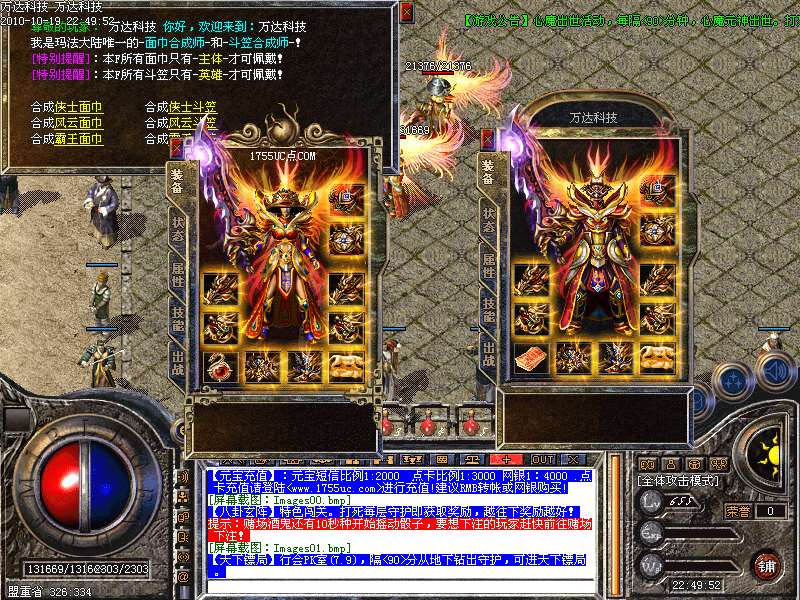 【特色功能】:【天降横财】每隔90分钟,会自动掉落大量元宝和金锭在行会PK室。