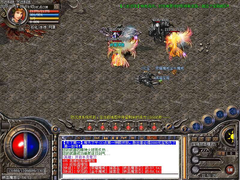 【特色功能】:【上古龙神】行会PK室(23.24)上古龙神90分钟会出现。爆装备元宝。。