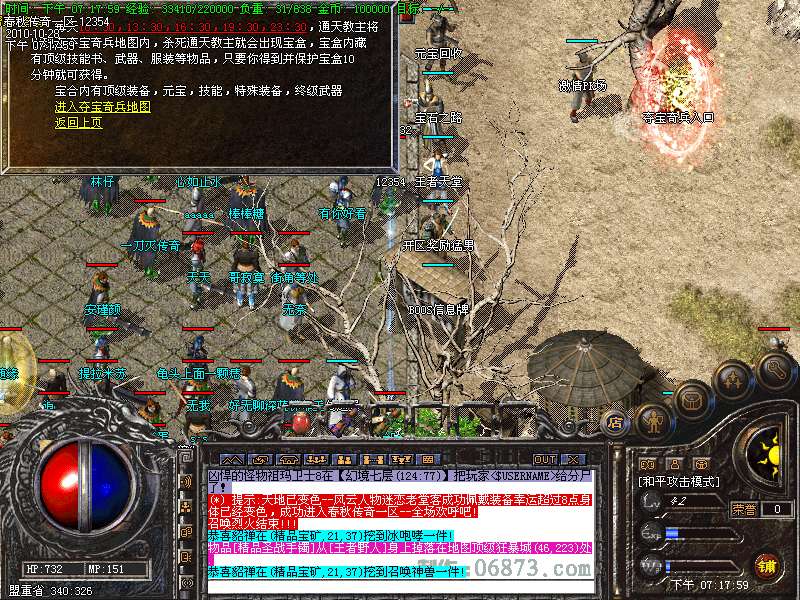 29. ①.天下第一:每职业等级第一名随时在比齐皇宫申请,可获得1.2倍攻魔道!②.行会争霸:每天下午18点,土城左上角点功城公告牌进入,获胜行会"奖励"元宝!③新区2天后功沙,以后每日功沙:新区功沙后跨服合区保证激情和人气!