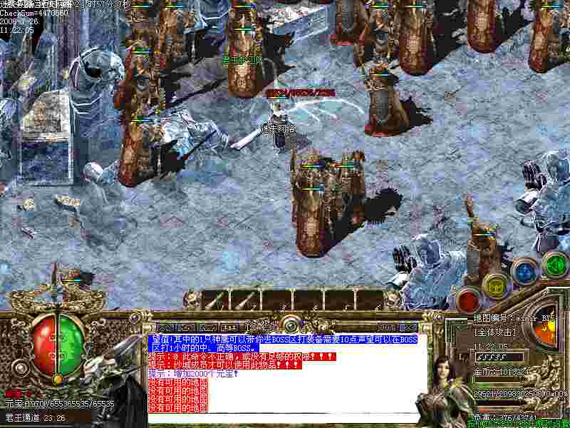 在黄金道场第九层打稻草人进入到黄金休息室,在那里大家可以补充药品,聚集玩家,然后在[13,9]下到黄金道场护法堂,杀死里的护法,在从[29,15]下到最后一层黄金道场宫殿。