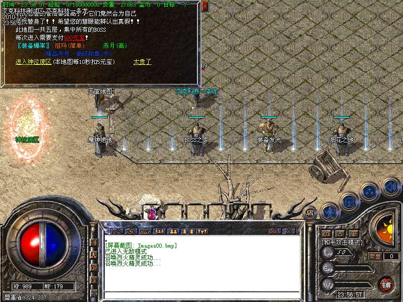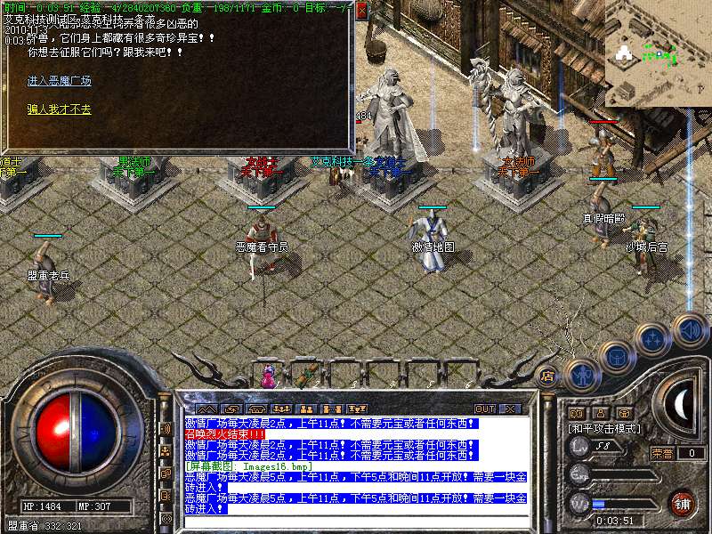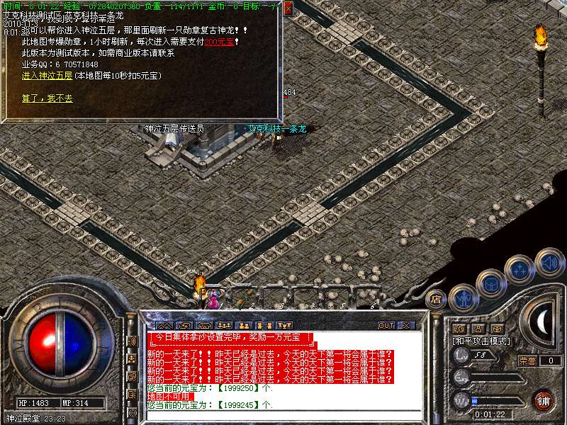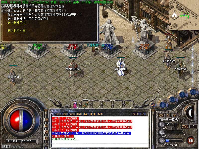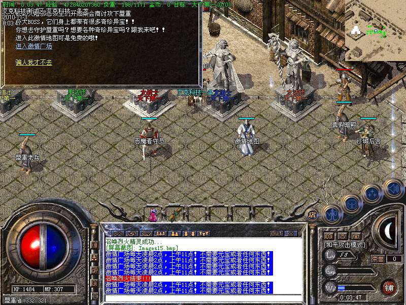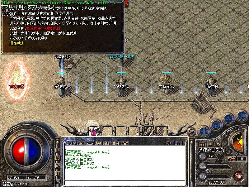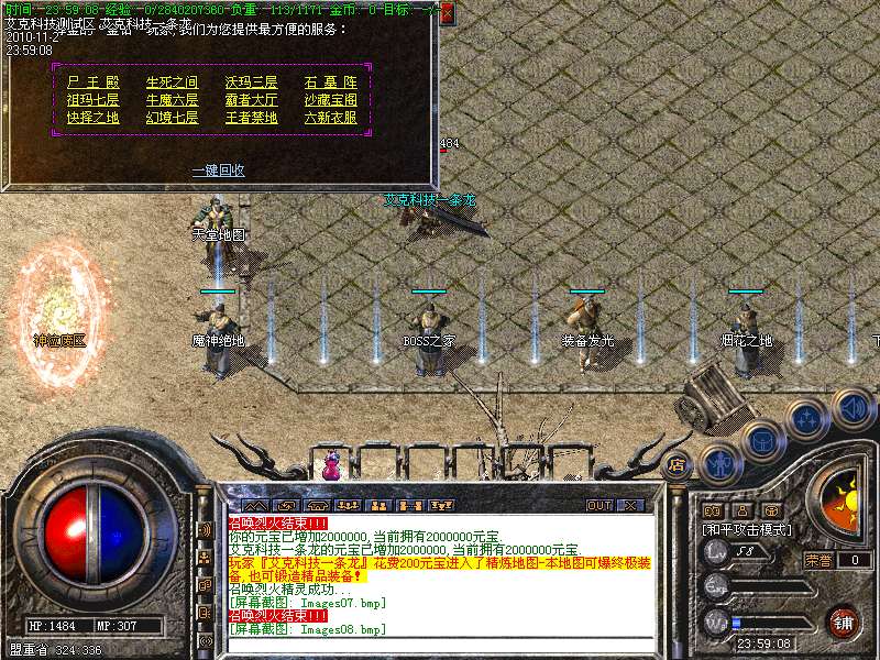 6.高级打宝地图:神泣、天堂、激情、烟花、后宫、玛雅5层、挑战终极、魔神绝地、恶魔广场、精炼之地等等,更多游戏功能,请玩家自行探索!!!